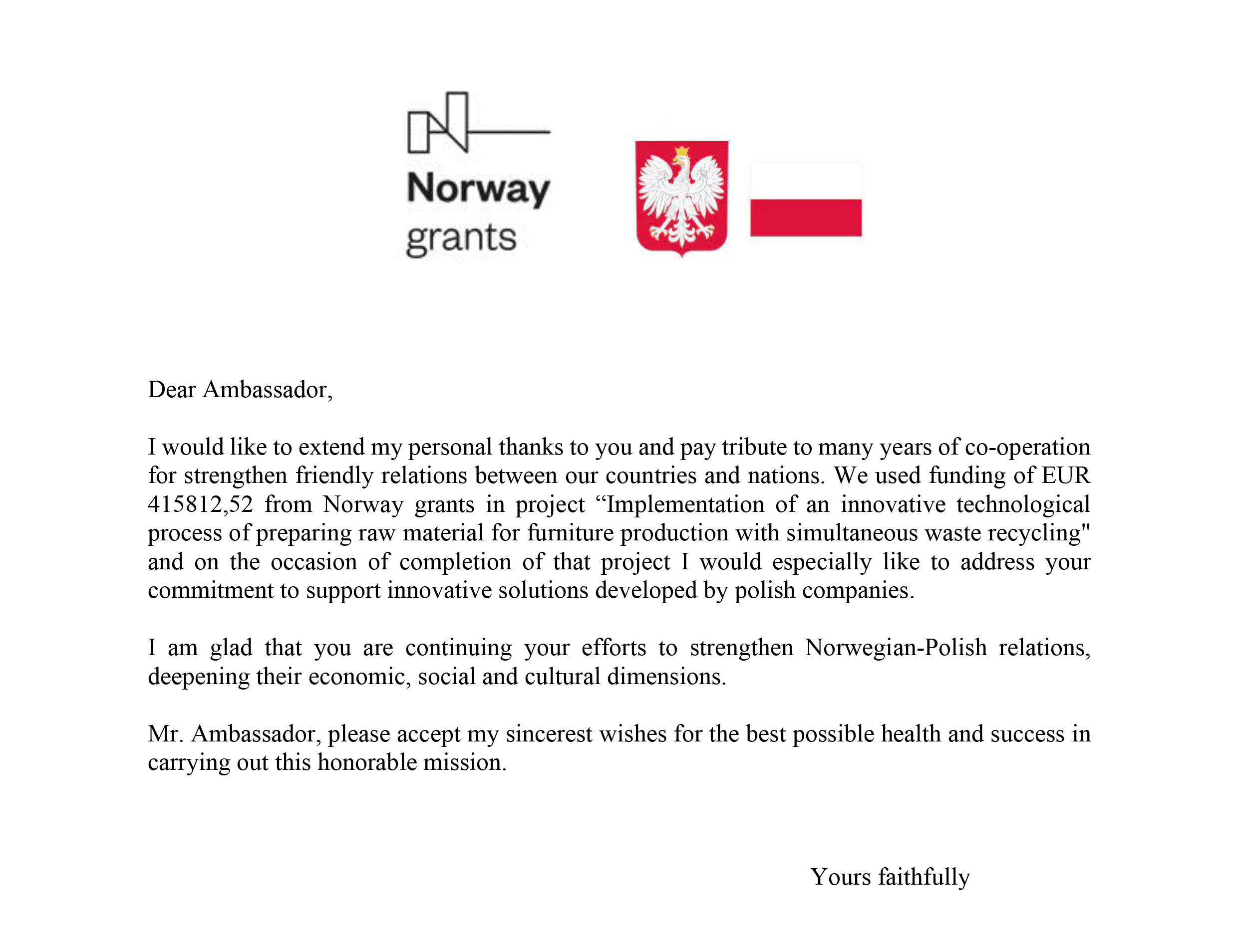 - reading a letter of thanks to the Ambassador of the Kingdom of Norway in Poland,